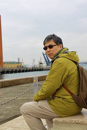 早上出門時氣溫覺得沒這麼冷,但由於這裡是港口,風好大,有變冷的感覺…綸正在哈氣…吞雲吐霧呢~