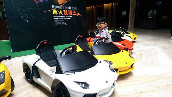 到達時,房間還沒整理好,先四處晃晃,在大廳處擺了好多台電動車,這太犯規了呀,也太吸引小男孩了吧~