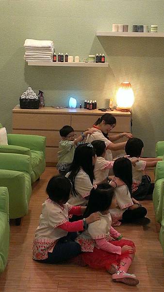 第四個芳療師,請一位家長陪同進入,體驗一下孩子的芳療手法。