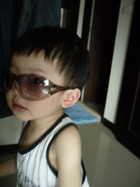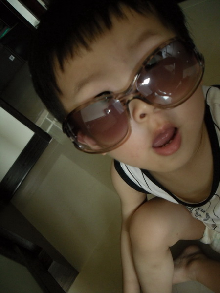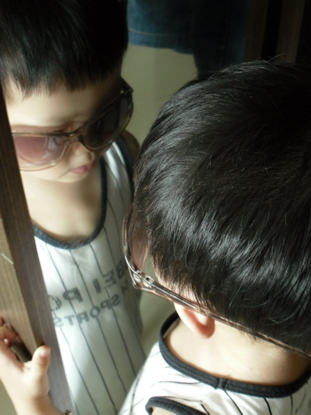 下面這幾張是他要戴太陽眼鏡,而且要照鏡子說自己很「帥」