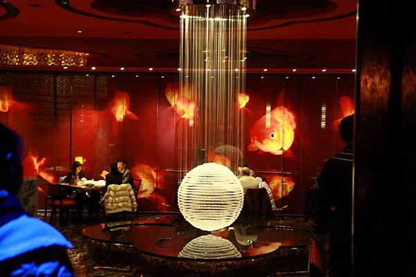 另外餐廳的牆壁和地板到處有「金魚」出現,是取其「富貴」的意思