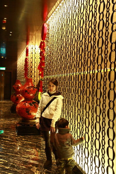 進到裡頭,低調奢華的裝潢,更顯為驚豔,那顆大大的水晶球由上連接到下的燈光,閃閃發亮呀