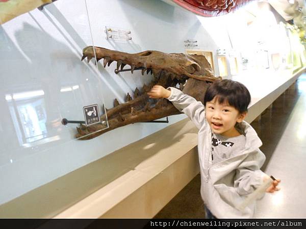 最近集乖寶寶貼紙的小禮物是-恐龍,因而引發了綸綸對恐龍的好奇和誘發他的想要,於是出發看恐龍去~門票一個人二十元,綸因為還小所以不用票,這裡附近停車困難…把拔繼續找車位,就由我帶綸進去逛逛嘍~